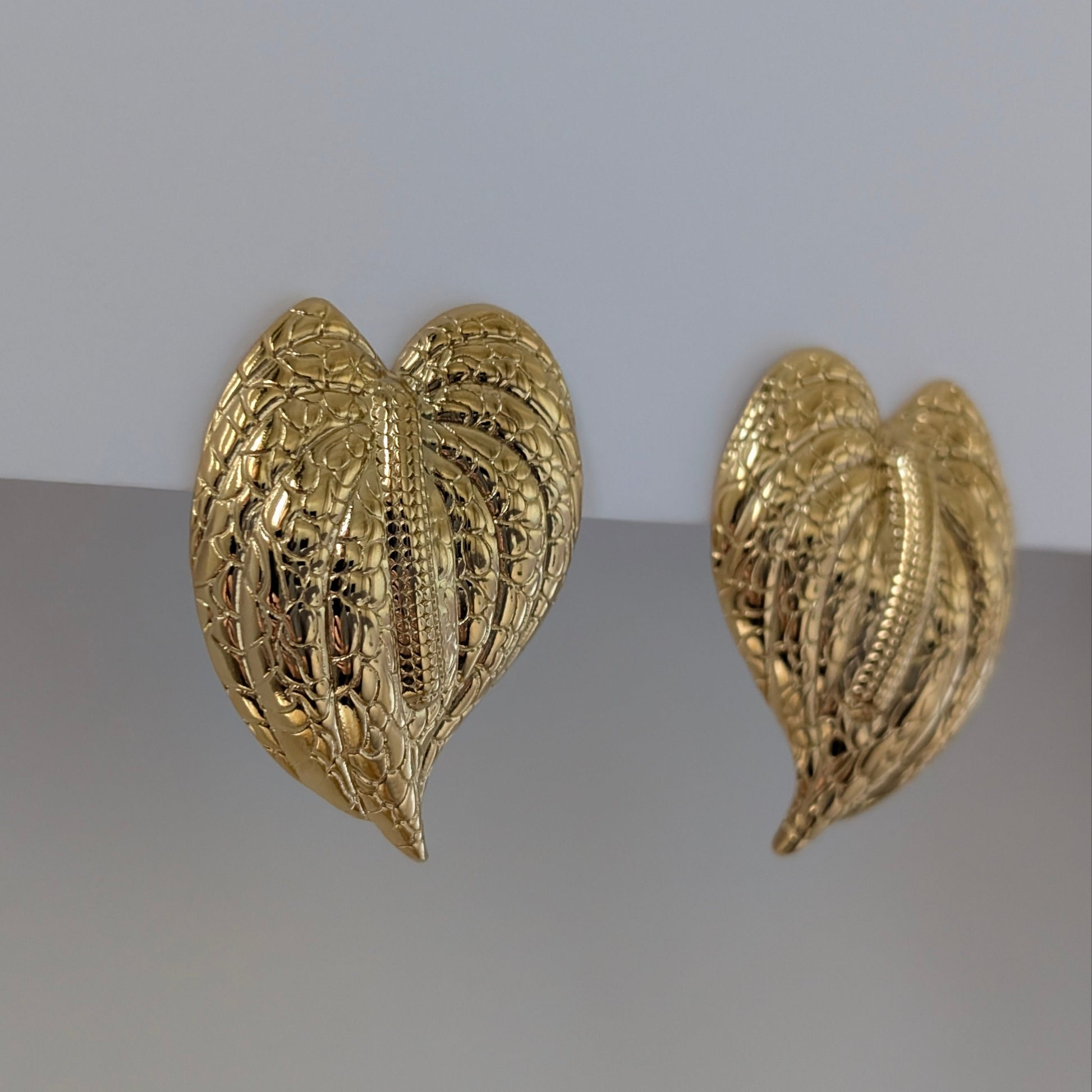 The ideal summer statement earrings, big impact with little weight, making it perfect for resort living. The large anthurium studs are a unique twist on the tropical/nautical trend for this summer. Hair up or down they will bound to sparkle and be the statement to any look. Either dressed as a lathe leaf stud or can be an epic statement for your next holiday festivities!