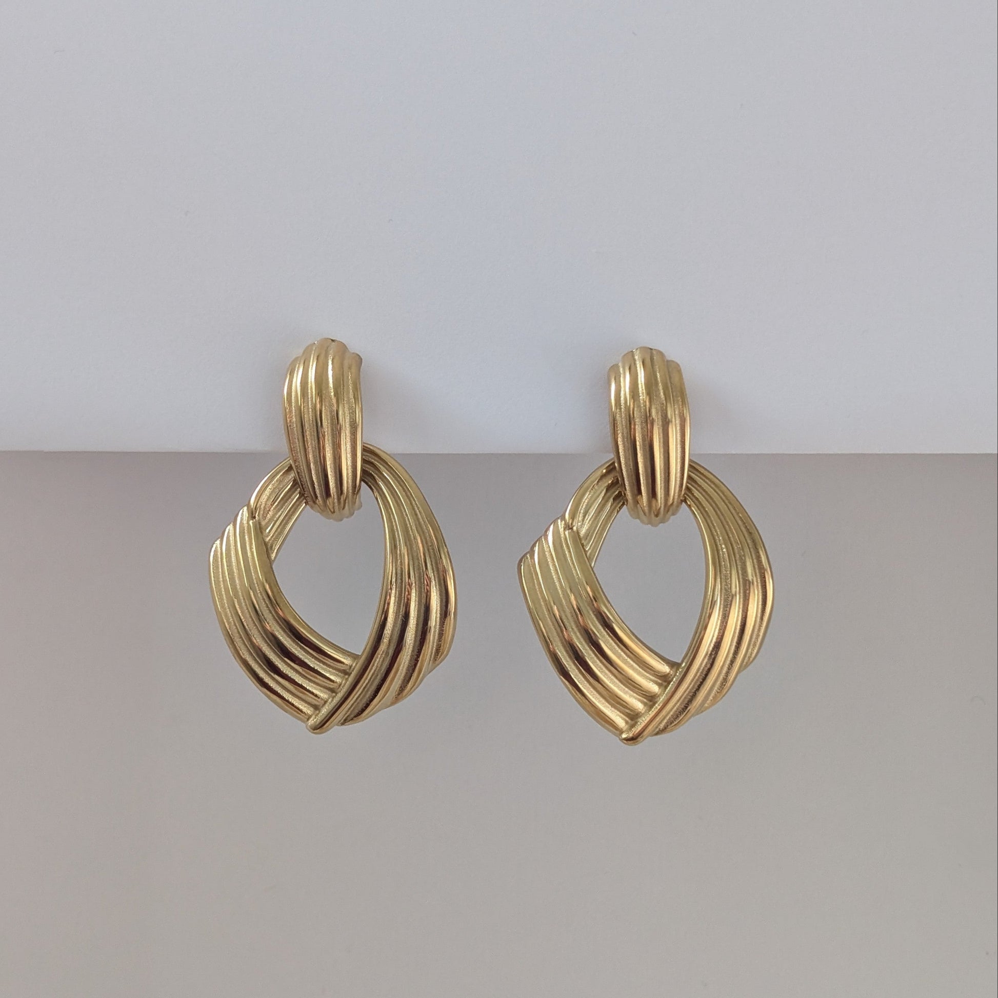 A bold twist on a classic - the door knocker earrings. Inspired by vintage jewelry, these jumbo door knockers are a bold elegant take on the classic we all know and love. The movement in the studs, adds even more sparkle. They are a perfect addition to your date nigh look!